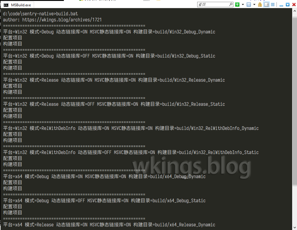 sentry-native库是sentry.io公司推出崩溃调试SDK库。本文记录在windows上编译sentry-native库的过程,并实现静态/动态/x86/x64/Debug/Release/RelWithDebInfo多模式编译。 如果不想自己编译,也可以借助vcpkg导入sentry-native库实现全自动编译。编译完成后去vcpkg的库文件夹里把crashpad_handler.exe复制到项目程序目录就可以了。 编译 首先去sentry-native库的release发布页面下载最新版本的sen…